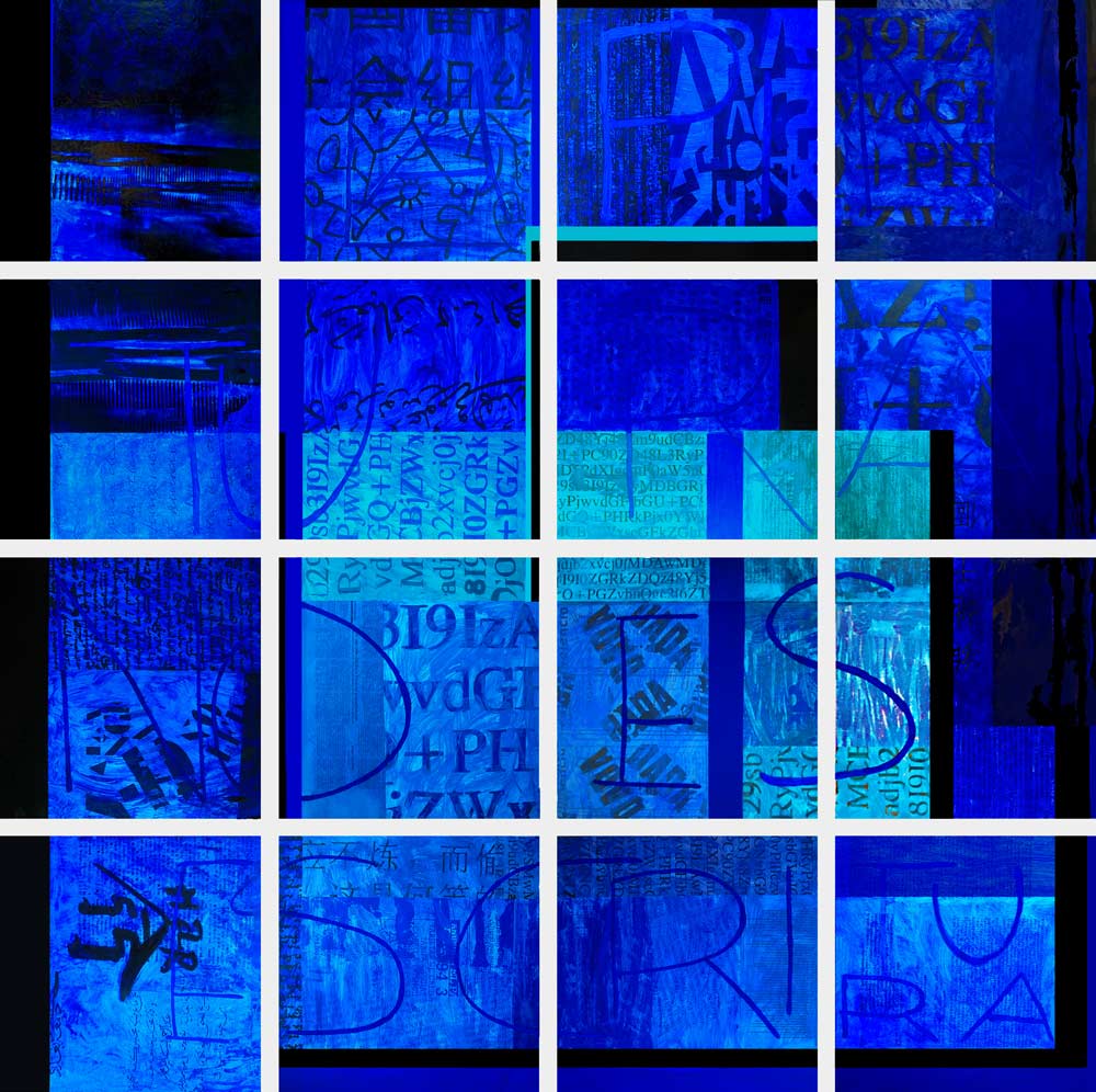 La pintura no es escritura es una serie de dieciséis cuadros que, teniendo cada una de ellas validez como composición autónoma, son al mismo tiempo parte de una composición mayor en la que se puede leer el aserto que sirve de título a todas ellas. A su vez, cada composición individual está formada a partir de fragmentos de escritos extraídos de fuentes muy diversas: trozos de cartas y periódicos, inscripciones sumerias, latinas, árabes o chinas, retales de papeles de oficina y de cuadros vanguardistas. Pero en ellos la palabra escrita es imagen, esto es, modulación de líneas, equilibrio de formas, distribución de espacios y manchas, expresividad de texturas y pinceladas.
